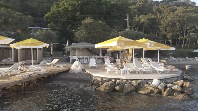 Plajımızda ve iskelede bulunan şezlonglar, minderler ve şemsiyeler ücretsizdir. Ayrıca plaj için havlu servisimizden ücretsiz olarak yararlanabilirsiniz.
